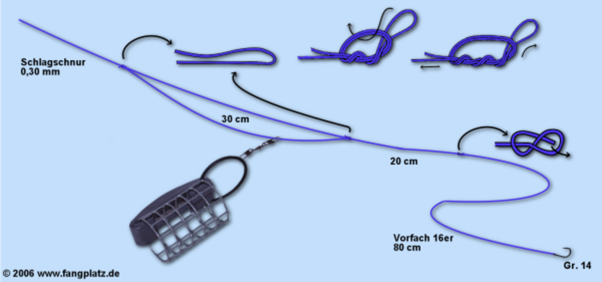 Eventuell ahnt ihr es schon beim Anblick der Abbildungen, das Feeder-Angeln viel mit Knotenkunde zu tun hat. Den Albright-Knoten habt ihr oben schon kennengelernt. Es werden aber noch ein paar Knotenformen folgen.