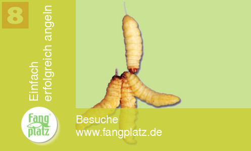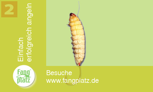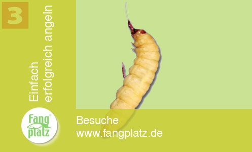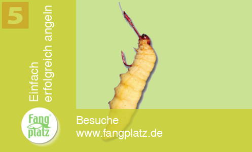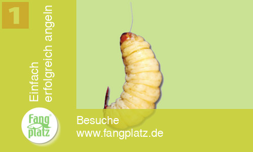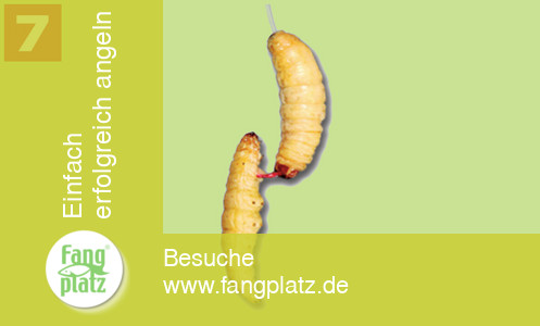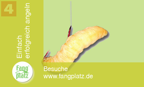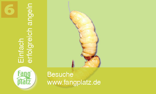 Die erste Bienenmade mit dem Schwanz zuerst komplett auf den Haken und auch ein Stück auf das Vorfach ziehen. Drei weitere Bienenmaden mit dem Kopf anködern.