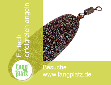 Kommen wir nun zur Frage welches Blei ihr nun für eure Montage verwendet. Die Wahl des Bleis hängt von der Gewässersituation ab. Eure Bleie sollten aber alle mindestens 80gr wiegen, da eure Montage sonst keinen Selbsthakeffekt erzielen kann und es zu Fehlbissen kommt. Wenn ihr auf großer Distanz fischt solltet ihr schwerere Bleie benutzen, damit sie durch die Schnurspannung nicht auf unserem Futterplatz verzogen werden.