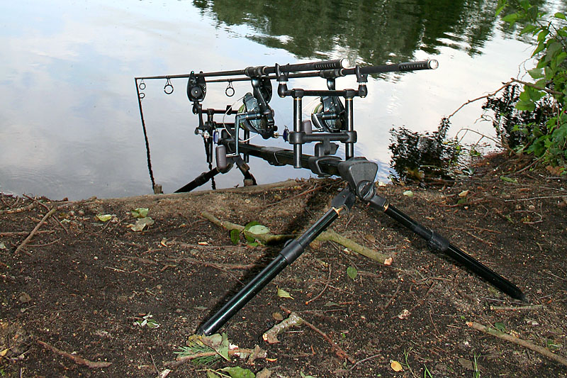 Die Kombination aus zwei Tripods und mit jeweils einer aufgeschraubten Buzzerbar ist wohl die flexibelste Lösung und bietet ein gutes Preis-Leistungs-Verhältnis. Ein Tripod wird für die Bissanzeiger verwendet und auf dem andere liegen die Griffenden der Ruten auf.