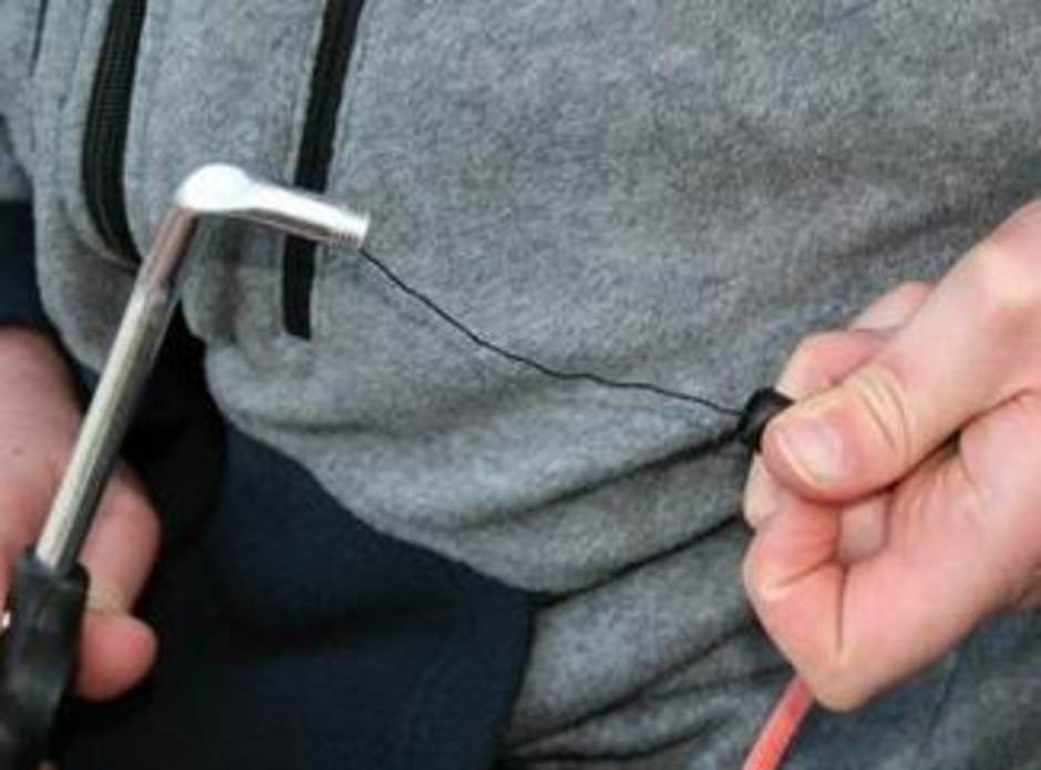 Damit wir unsere Schleudergummis immer gleichstark spannen sind uns die Schnüre in den Gummis behilflich, die wir vorher mit dem Stellrädern am Schleudergriff einstellen. Ein Trockendurchlauf auf einem Feld kann da helfen.