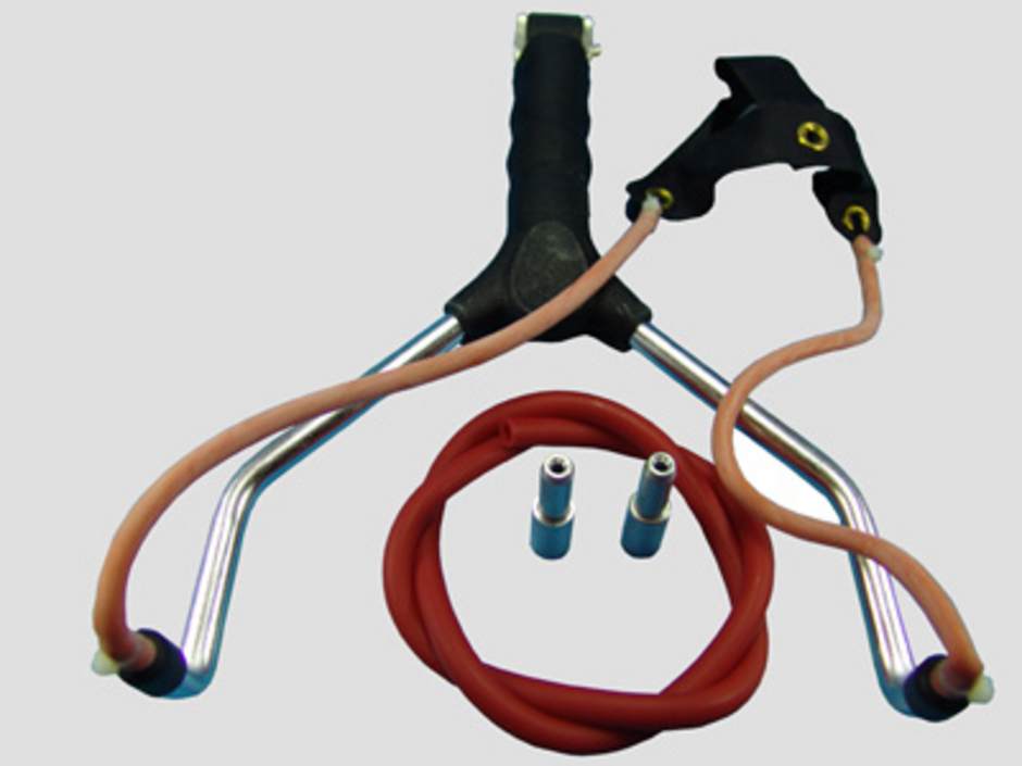 Um die Schussentfernung genau einstellen zu können, sollte die Schleuder ein Bindfaden in den Gummis führen, mit dem man die Spannweite fest vorgeben kann. Die Länge des Fadens wird dann über ein Stellrad an der Schleuder vor dem Angeln eingestellt. Richtige Profis brauchen diese Hilfe nicht mehr, haben sie doch die Spannkraft ihrer Schleudergummis im Zusammenspiel der Schussweite praktisch schon im Blut. ;)