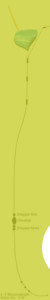 Möchte man die Pose ruhig an der Stelle halten, um dicke Brassen oder Barben zu fangen, dann sollten immer alle drei Bleie aufliegen. Bei leicht verzögertem Führen sollten 1-3 Bissanzeigerbleie aufliegen, je nach Strömungsverhältnissen.Ganz wichtig ist auch die Befestigung der Schnur an der Pose. Sie wird mit vier Silikongummis (drei unten, eins oben) befestigt. Der Posenkörper darf dabei die Schnur nicht berühren (s. Bild rechts). Das praktische dieser Befestigung mit Gummischläuchen: Beim Verpacken der Montage kann man die Pose entfernen und schonend in einer Posenbox aufbewahren. So kann beim Transport wirklich nichts an ihr kaputt gehen.